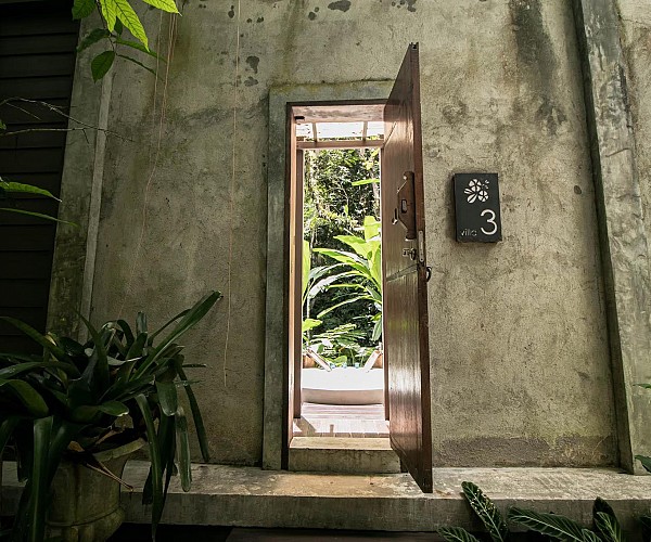 The first villa room is located on the stream curve. Guests can walk down to the stream and dip their feet. This is the only villa that has two single beds.