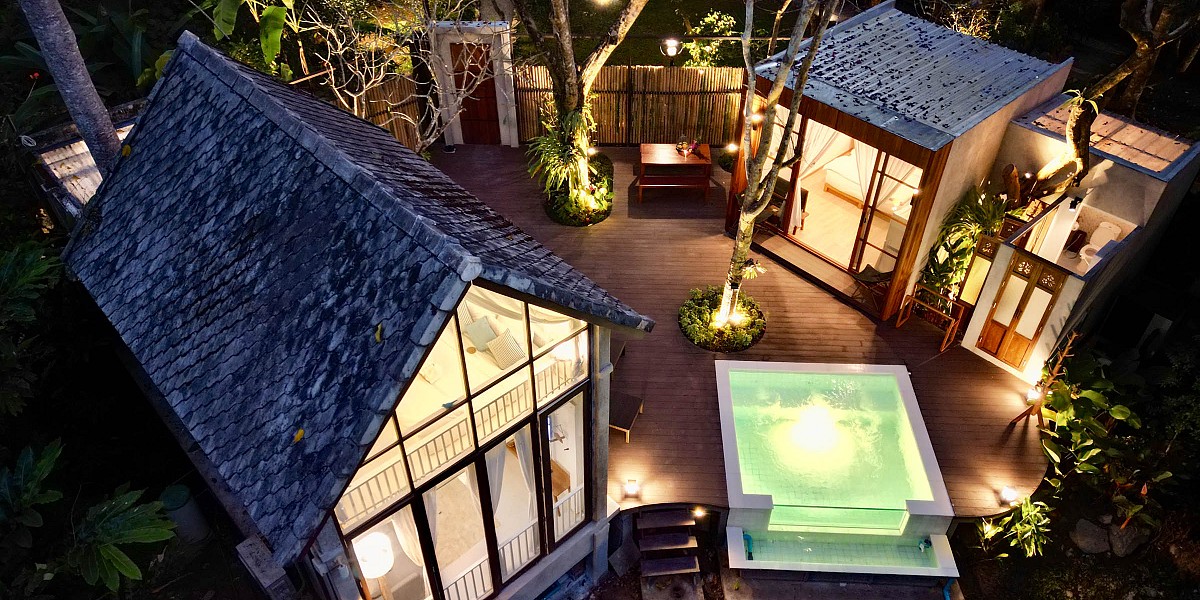 2 rooms, 2 styles with temperature adjustable pool. Ideal for guests who are coming with family or group of friends.